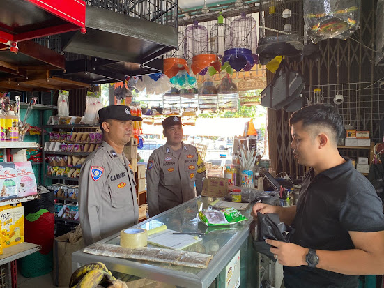 Dalam kegiatan tersebut, petugas menyapa para pemilik dan karyawan toko sembari menyampaikan pesan-pesan kamtibmas.